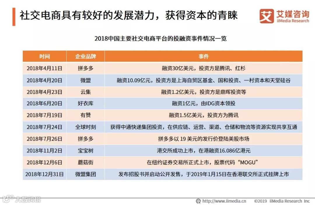 社交电商具有较好的发展潜力,获得资本的青睐