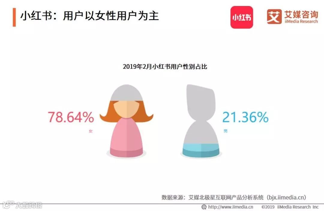 iiMedia Research(艾媒咨询)数据显示,小红书女性用户比例为78.64%,而男性用户比例则为21.36%。