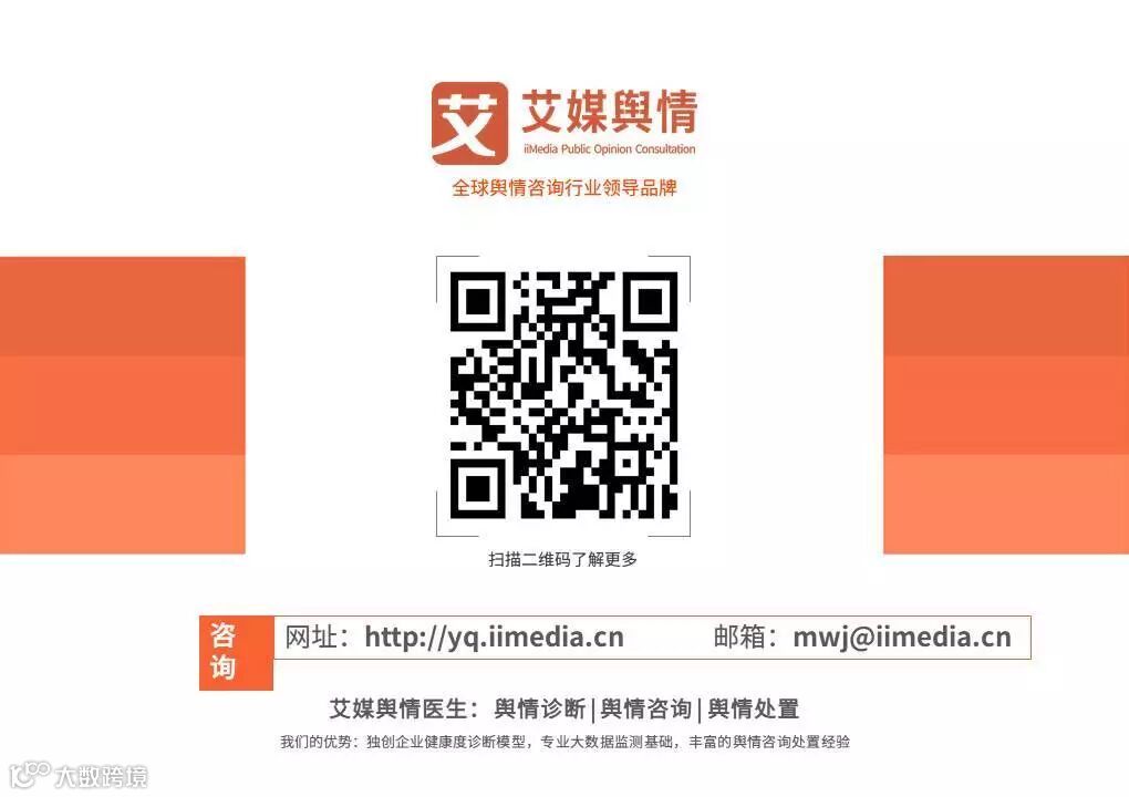 艾媒舆情(yq.iimedia.cn)是中国领先的大数据舆情咨询领导品牌,最新重磅推出舆情健康顾问产品——“艾媒舆情医生”。艾媒舆情医生基于先进的全网大数据监测和挖掘技术、可视化分析技术,为企业提供“舆情诊断、舆情咨询”的一站式服务,帮助企业及时预警、判断事态走向、应急处理突发舆情,维护企业良好的公共形象与用户口碑。