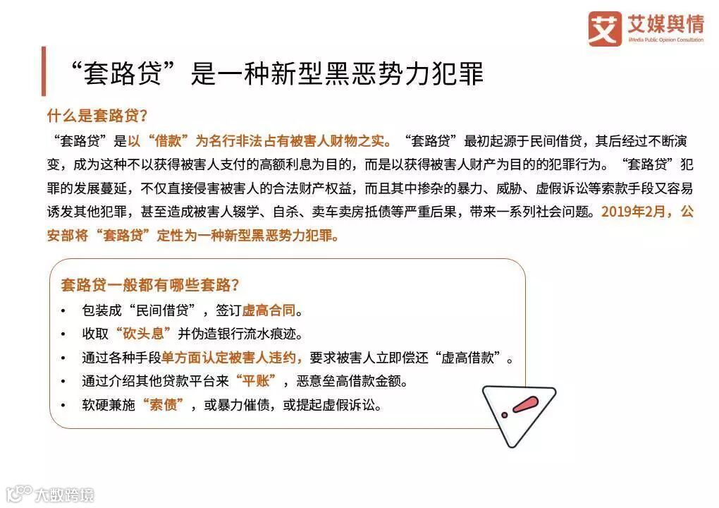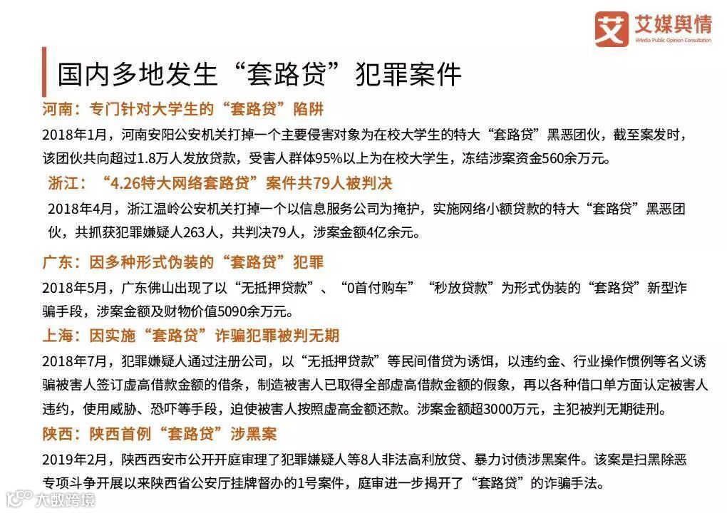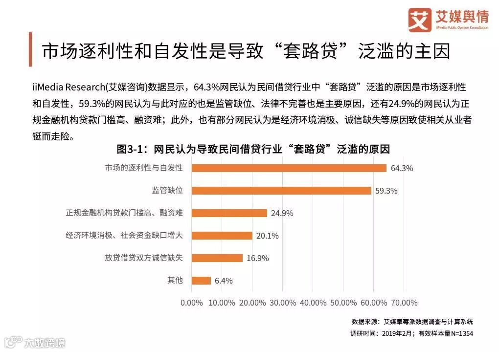 “套路贷”是新型黑恶犯罪的一种,河南、浙江、广东多地都曾发生“套路贷”犯罪案件,严重损害消费者权益。iiMedia Research(艾媒咨询)数据显示,多数受访网民认为市场逐利性和自发性是民间借贷行业中“套路贷”泛滥的主因,超半数消费者认为应坚决取缔“套路贷”。对于消费者来说,不要轻信无金融从业资质的个人、中介、公司及其发布的各类无抵押、免息贷款等广告信息,警惕“套路贷”。