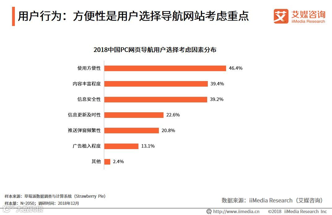 用户行为:方便性是用户选择导航网站考虑重点