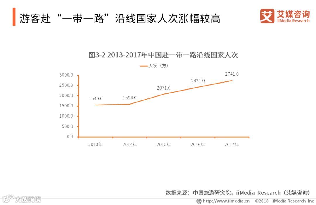 随着“一带一路”相关政策不断深入,中国赴“一带一路”沿线国家游客人次增长提速。由2013年的1549万人次,增长到2017年的2741万人次,五年间增长了77%。