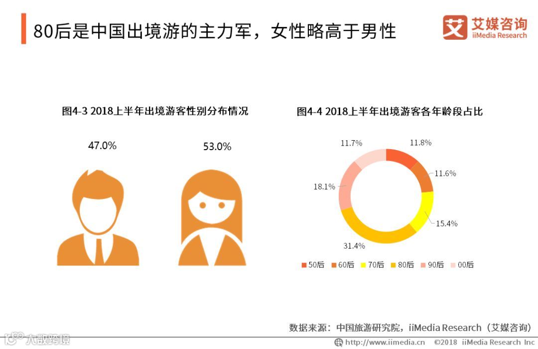 80后是中国出境游的主力军,女性略高于男性