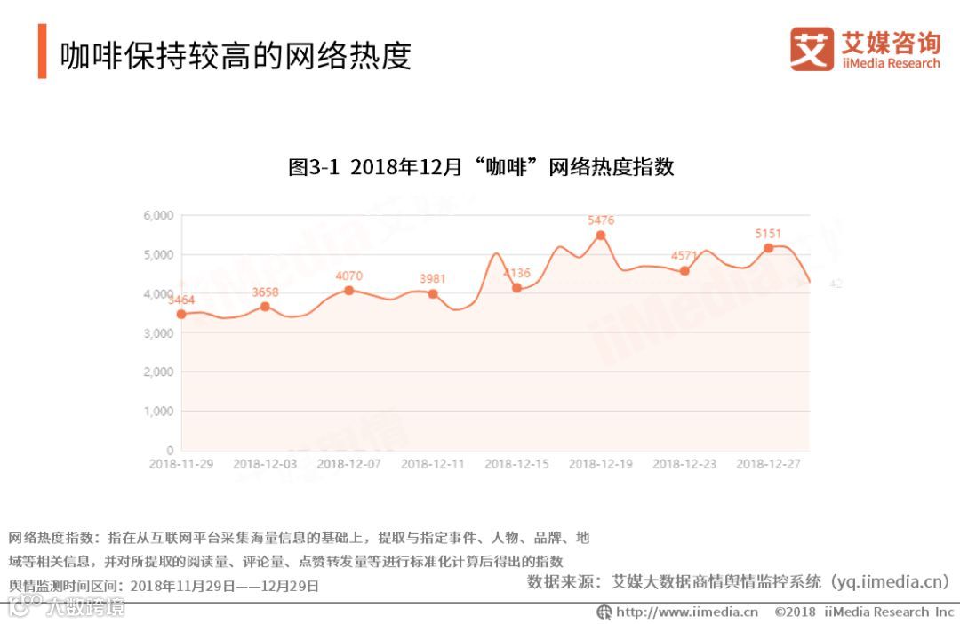 艾媒大数据商情舆情监控系统监测显示,“咖啡”一直保持较高的网络热度。