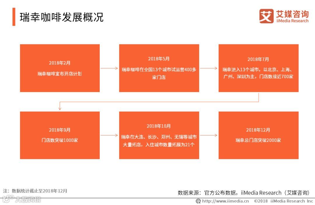 瑞幸咖啡自2018年2月宣布开店计划,利用线上线下融合的新兴咖啡售卖模式和颇具特色的多元营销方式迅速切入市场,截至2018年底,线下门店总数突破2000家。