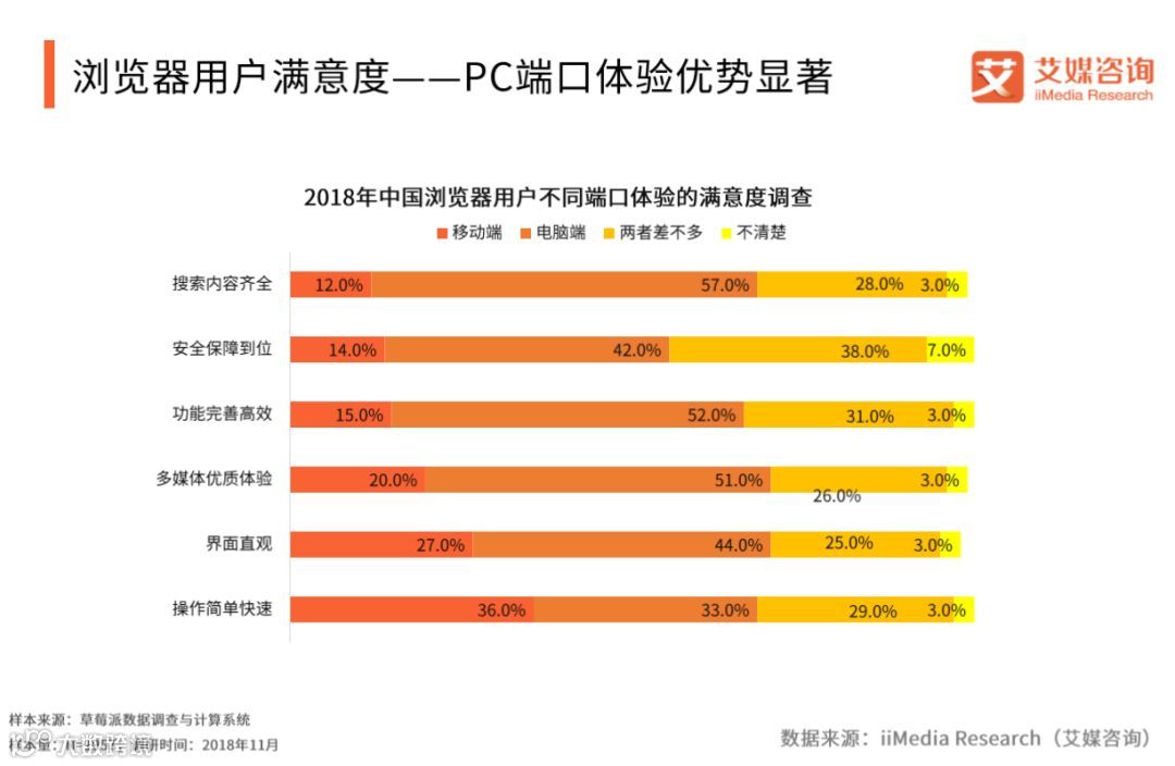 浏览器用户满意度——PC端口体验优势显著