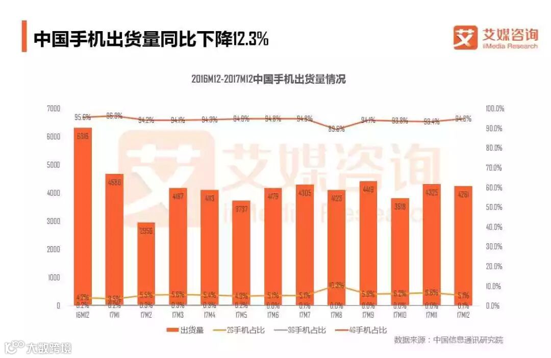 中国手机出货量同比下降12.3%