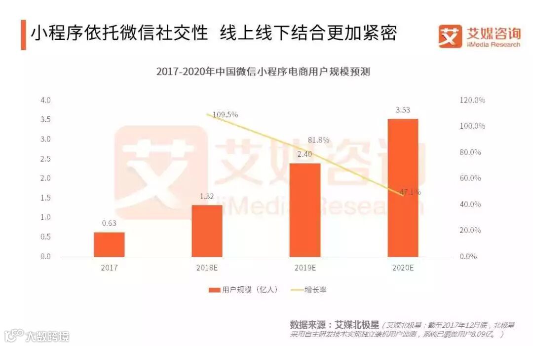 艾媒咨询分析师认为,小程序电商最大的优点是利用微信的社交性来降低获客成本,其次把电商的技术平台格式化,降低了卖家的技术门槛,减少了开发和维护成本。小程序电商可实现线上线下结合,吸引实体店铺加入,进一步扩大小程序电商市场规模。