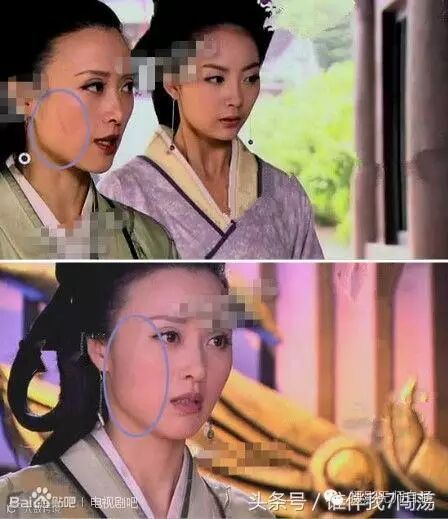 《美人心计》穿帮,薄太后脸上的伤疤一会儿有,一会儿没有。