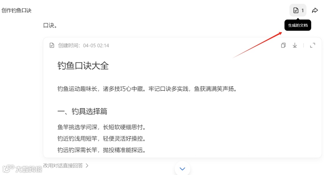 比较好的一点是,豆包能直接把内容生成文档形式,非常方便,生成一篇文档大概1分钟左右。