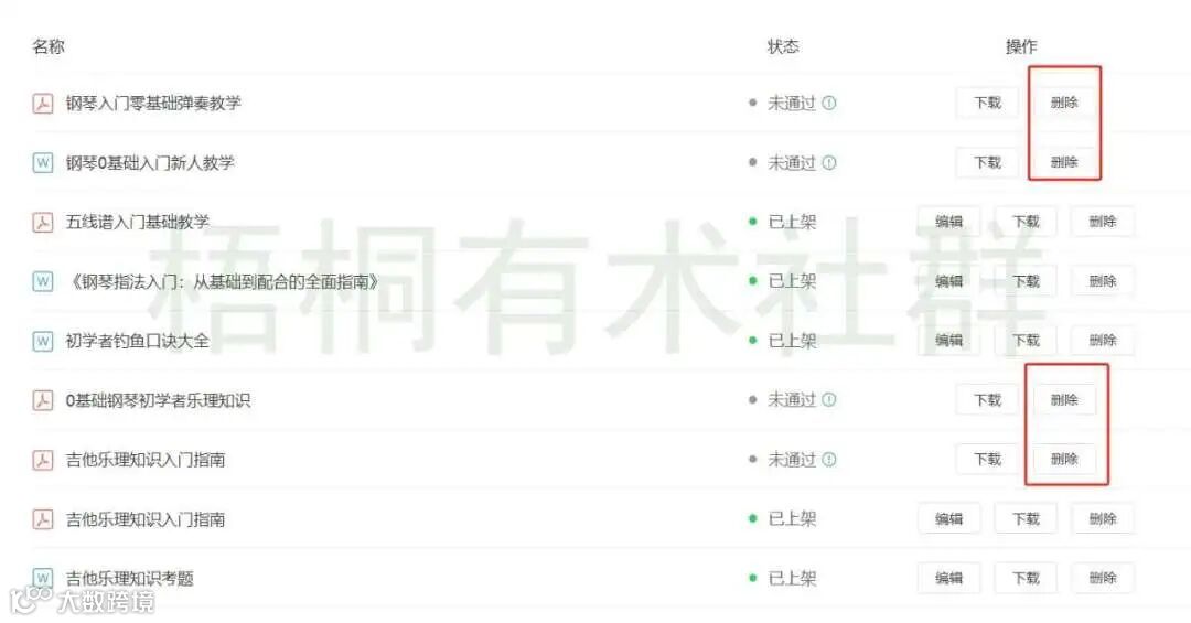 第三,如果某些文档没通过审核,就把后台的未通过记录删除,换个时间段,再把文档上传一遍,或者把文档保存成PDF格式再上传。