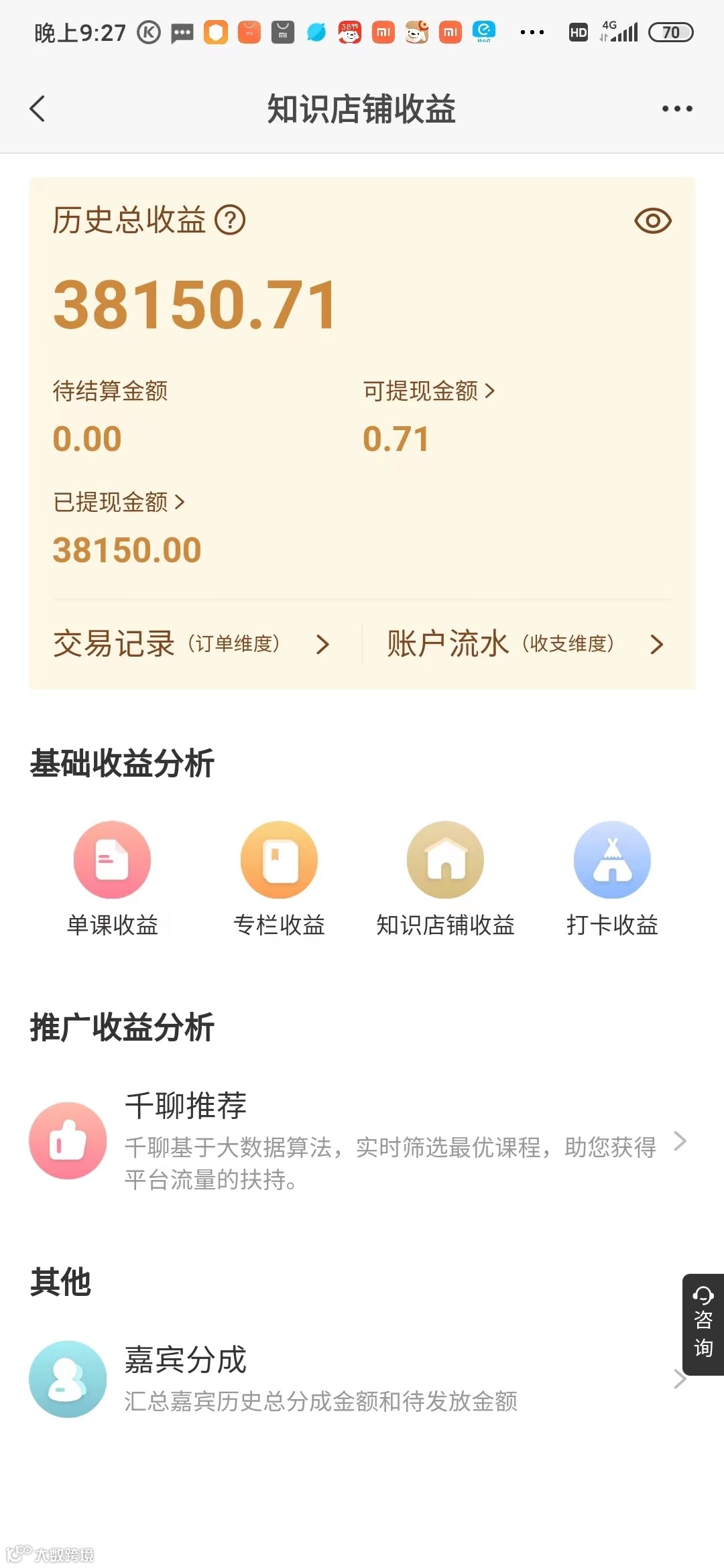 我之前代理过很多网课平台,比如千聊、荔枝微课、虎课等平台,首先佣金结算周期比较长,而且平台的课程并不是很吸引人,想把所有课程买下来,低于50万想都别想,关键是这些平台多数以技能课程为主,推广起来非常累,而现在的人最缺的是什么?