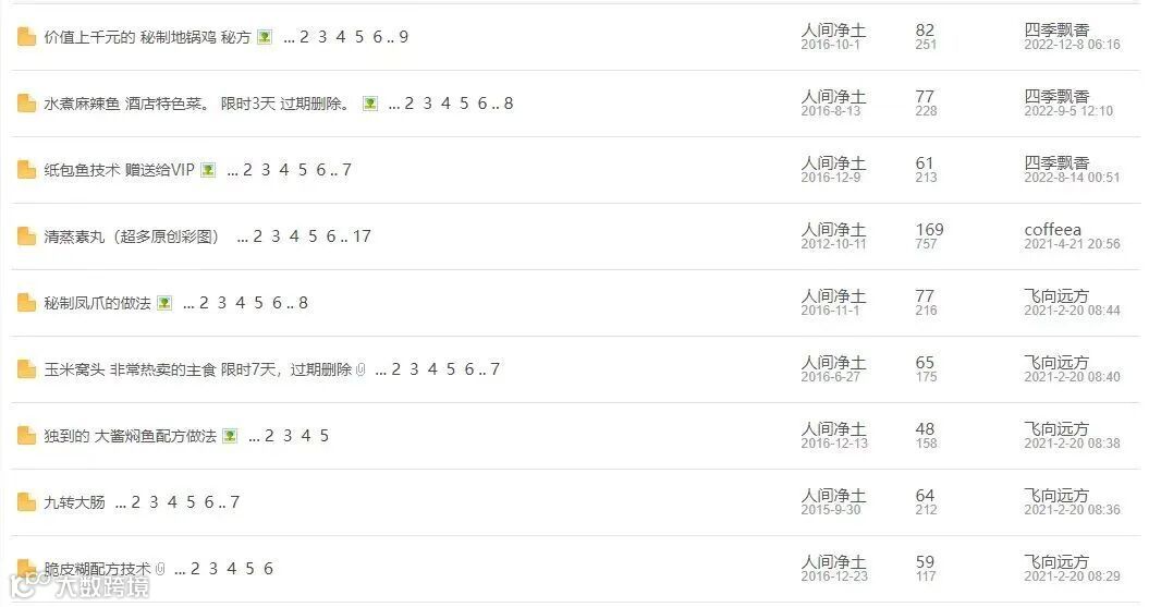 比如,我们看下上面这个截图,里面有黄焖鸡配方,水煮麻辣鱼,纸包鱼技术,脆皮糊配方等等。