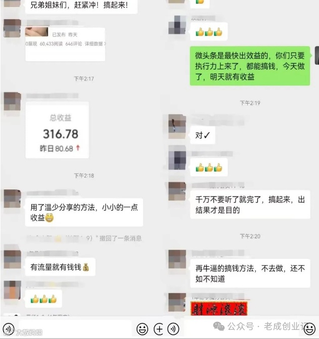 我社群一个小伙伴,今天的微头条又出收益了,昨天挣了80,内容还在爆,估计明天收益会超过100。