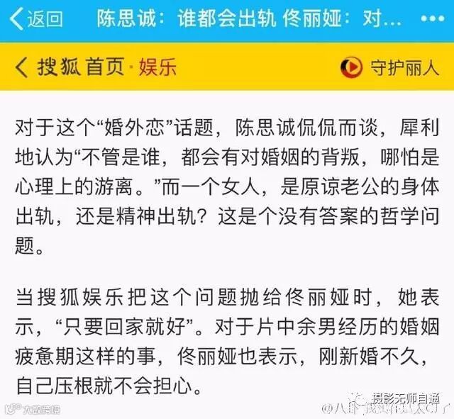 翻翻以前他俩结婚的采访,俩人婚姻观倒是有些好玩,一个直接说"是人都会出轨",还有一个只要求对方能回家就好,看来丫丫真的很爱陈导啊……