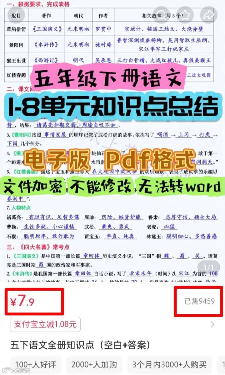 比如我有个宝妈学生,平时在家带娃,利用空闲时间,在小红书卖育儿相关的资料。