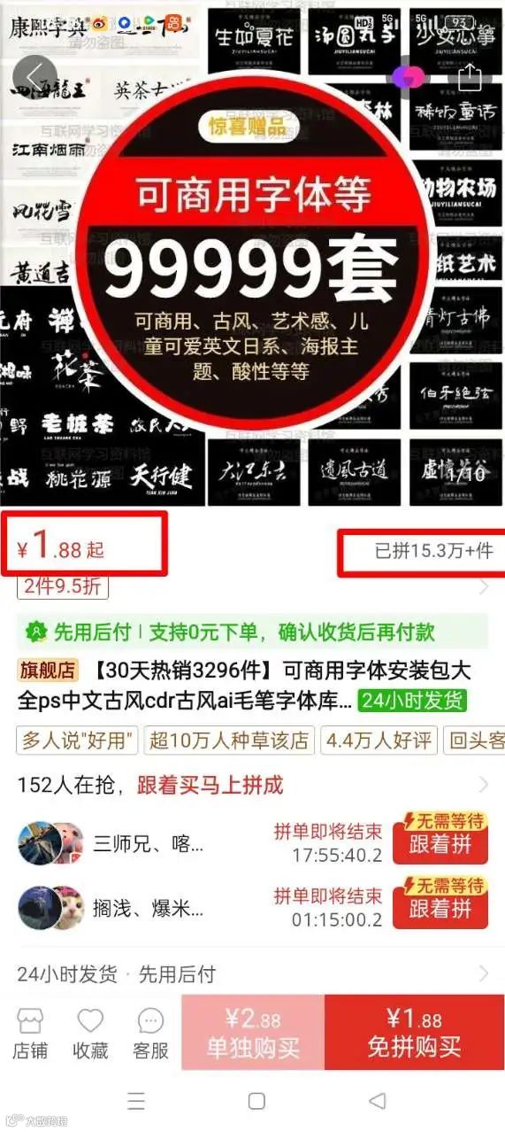 我们去某多多搜下“字体包”,看下这个图,我找的这个,是销量比较好的了。