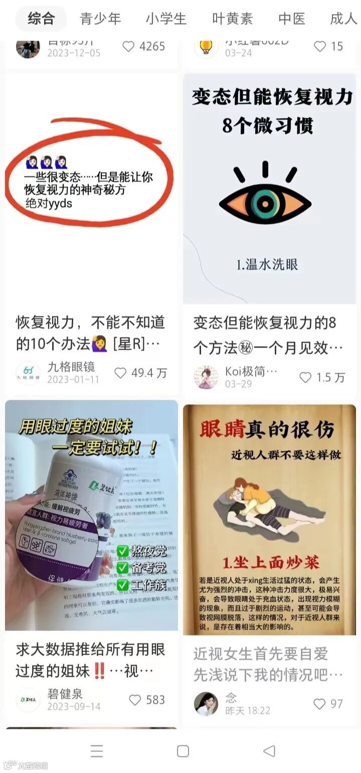 平时,大家近视了,都想到去线下眼镜店配眼镜的,谁能想到,还能在网上卖视力恢复资料的?