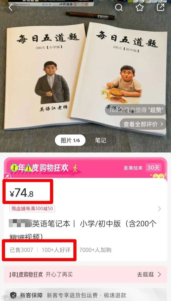 卖的是英语笔记本,客单价84.8,卖了3942份,搞了33.4万,非常厉害。
