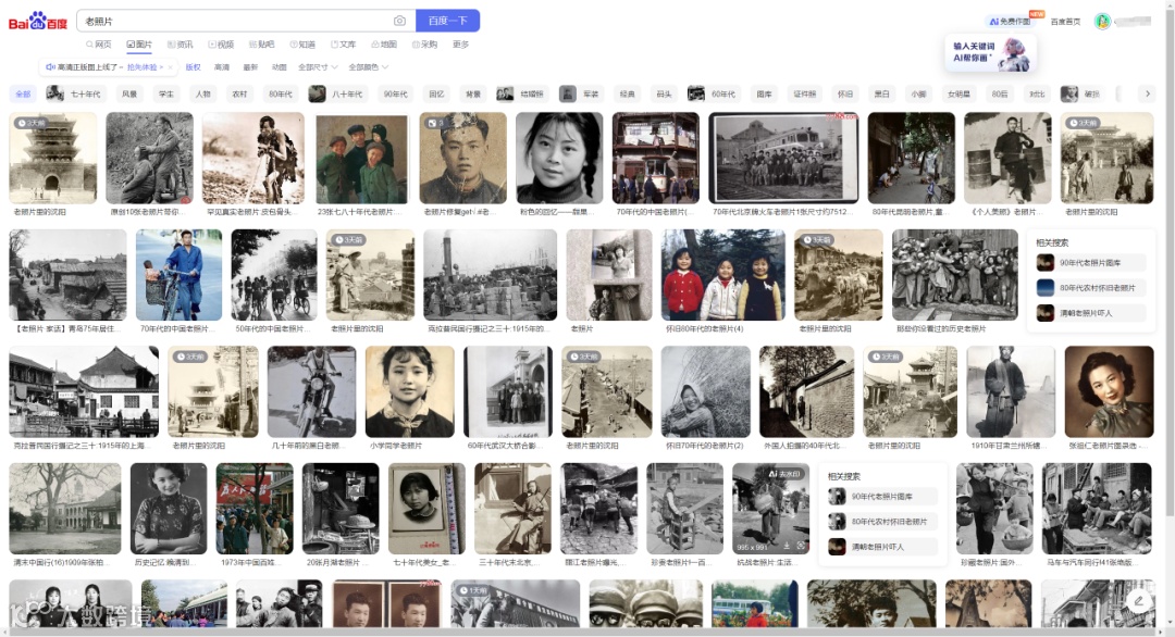 直接在度娘里搜索“老照片”,就可以搜到很多。