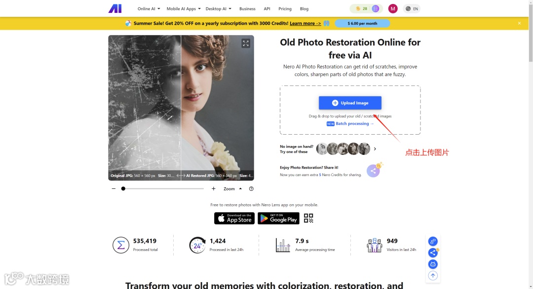 如果照片上有划痕,还可以使用下面介绍的AI网站进行修: