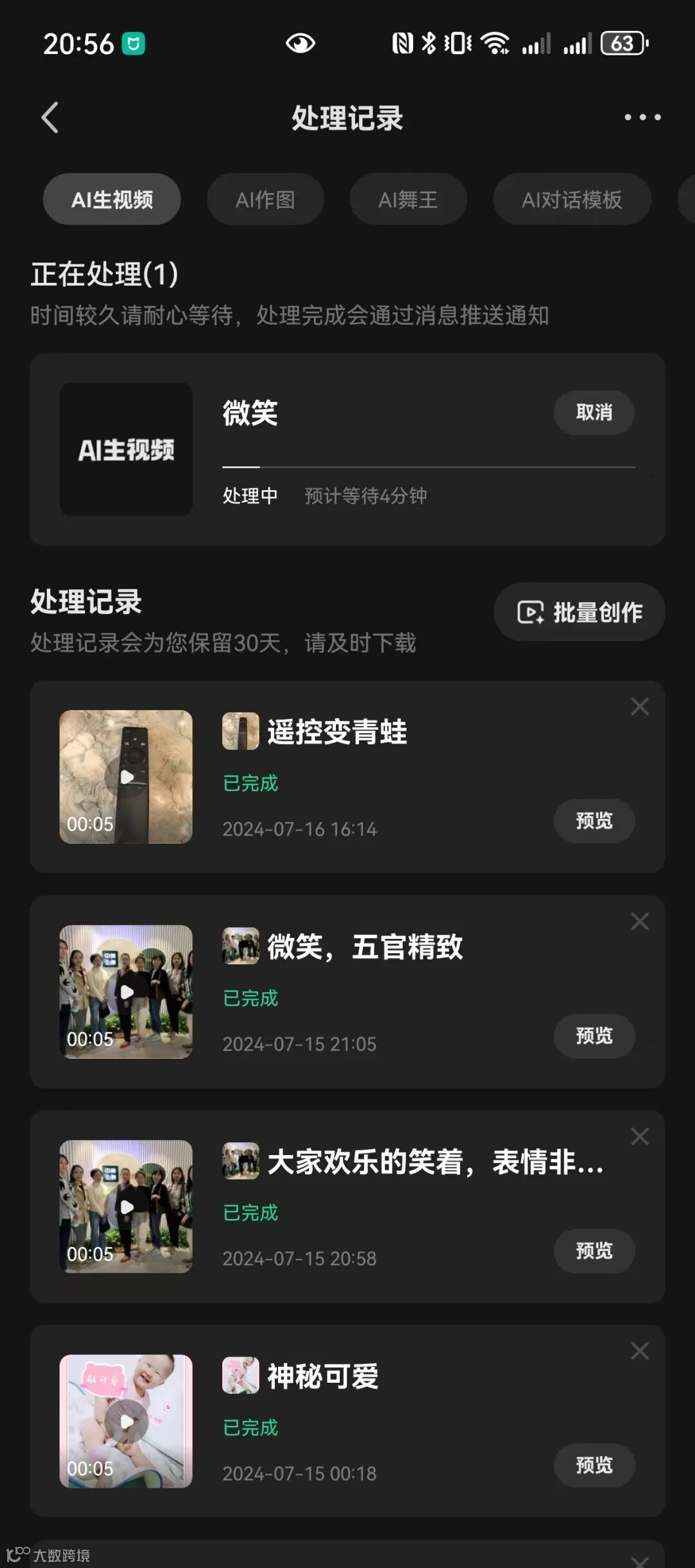 下面演示如何使用AI工具将老旧照片转成动态视频。