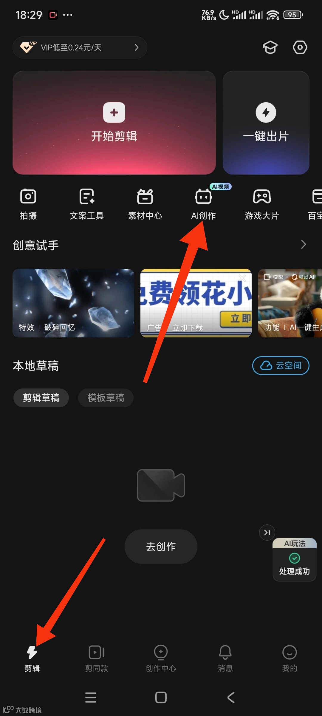 这里以APP给大家作为演示,下载APP后点击AI创作