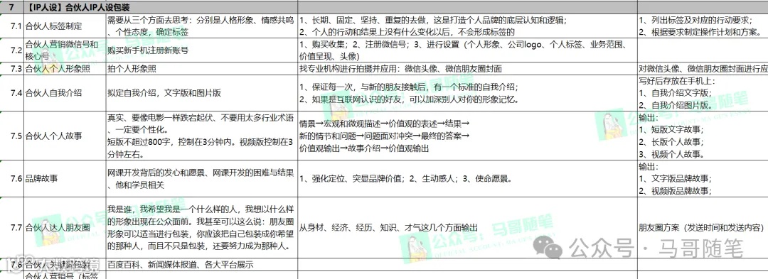 第一部分,人设打造,网创产品设计,引流,朋友圈营销,销售 ,话术,交付,售后,文案,海报