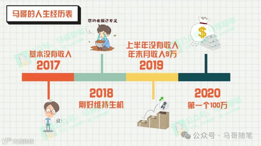 我会跟你讲,起初的五年到现在的所有经历,然后告诉你,我是如何一步一步从五年赚100万走到两年500万的。