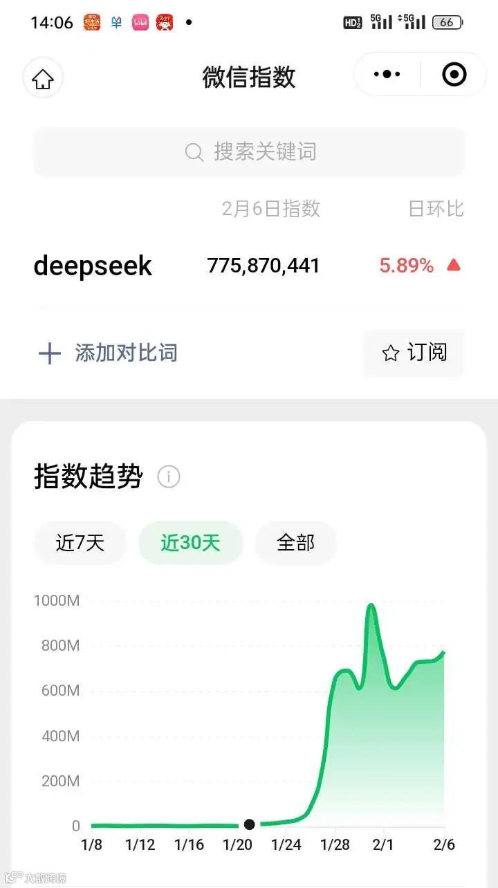 春节期间,deepseek的相关信息霸屏了,我相信你们也了解到一些情况了,看下deepseek的微信指数,就知道有多疯狂了!