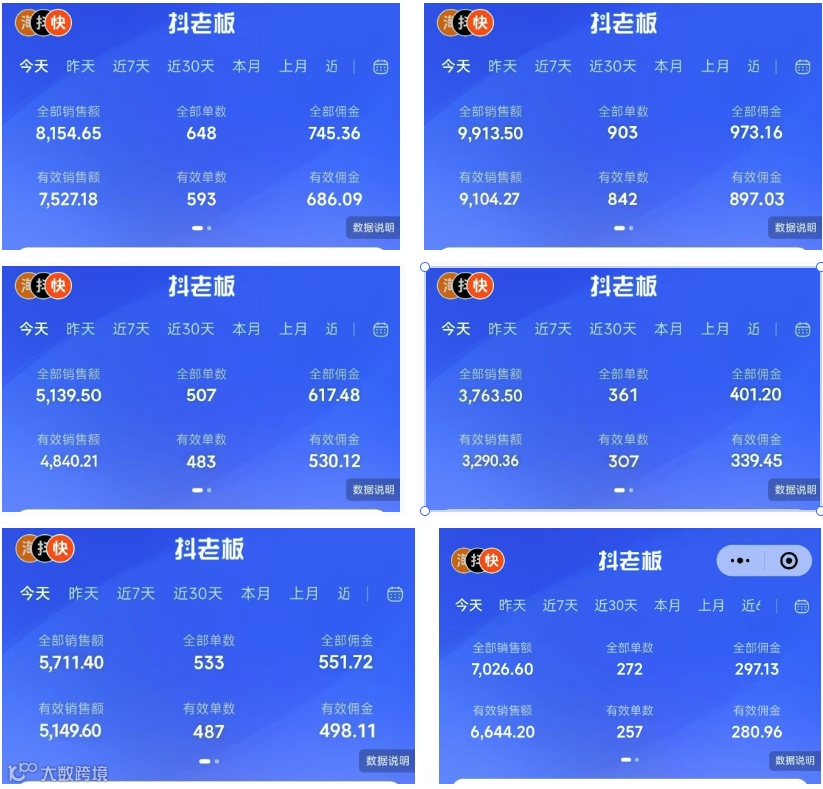 我们自己操作的账号,因为在选品和内容上下了功夫,单号日佣金能稳定在1000块以上。