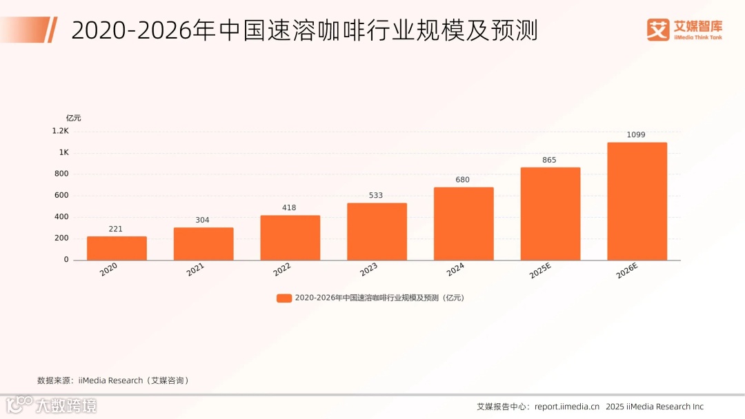 全球新经济产业第三方数据挖掘和分析机构iiMedia Research(艾媒咨询)发布的《2025年中国速溶咖啡行业发展状况及消费行为调查数据》数据显示,2024年中国咖啡豆产量已达到14.9万吨;此外,2024年中国速溶咖啡的行业规模为680亿元,2026年预计达到1099亿元。