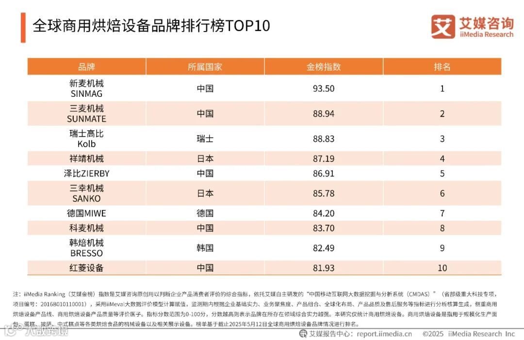 全球商用烘焙设备品牌排行榜TOP10
