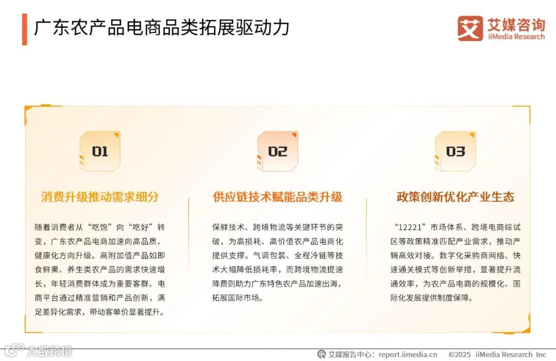广东农产品电商近年来实现跨越式发展,市场规模持续扩大、品类创新不断涌现的背后,是消费升级、技术突破和政策创新三大核心驱动力形成的良性互动机制。
