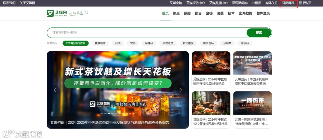 1、PC端用户请进入艾媒咨询官网(https://www.iimedia.cn/),点击页面右上角邮件图标,进入邮件订阅页面。