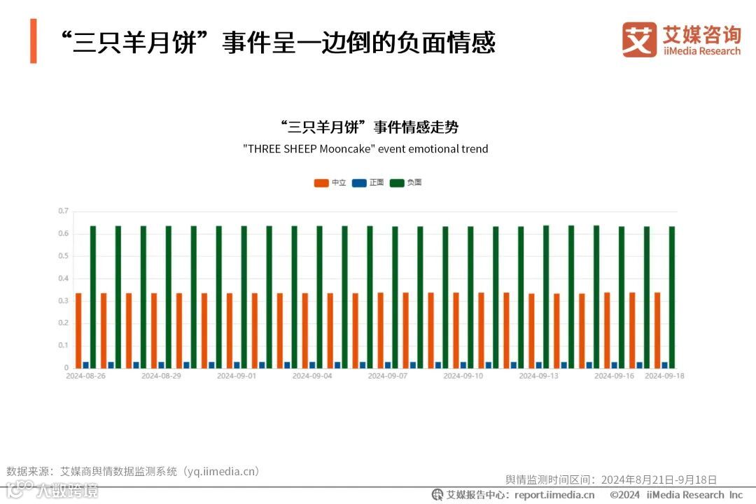 艾媒商舆情监测数据显示,2024年8月21日-9月18日,“三只羊”话题的负面情感持续成为主导情绪,负面情绪与正面情绪的比值基本在33:1左右徘徊。对于“三只羊”相关话题的讨论和关注中,大部分人对三只羊长期夸大宣传的传闻比较敏感,觉得被误导、欺骗和不满,从而对三只羊相关话题产生抵触情绪,公众对三只羊夸大宣传的行为普遍持批评和谴责态度。