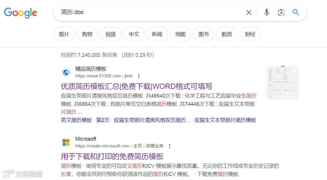 输入搜索指令:简历:doc