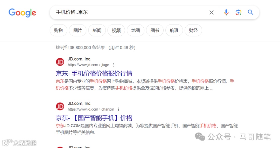 比如,搜索“手机价格..京东”,就只会在京东网站上搜索手机价格相关的信息,这样就给搜索添加了上下文。