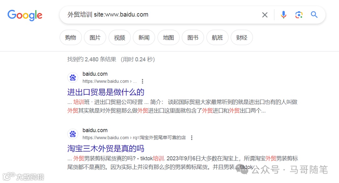 输入搜索指令:外贸培训 site:www.baidu.com