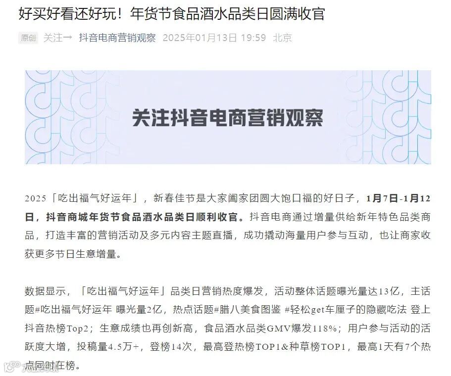 凭借节庆场景下的刚需消费优势,不少食品酒水商家都在电商年货节实现“一触即发”。