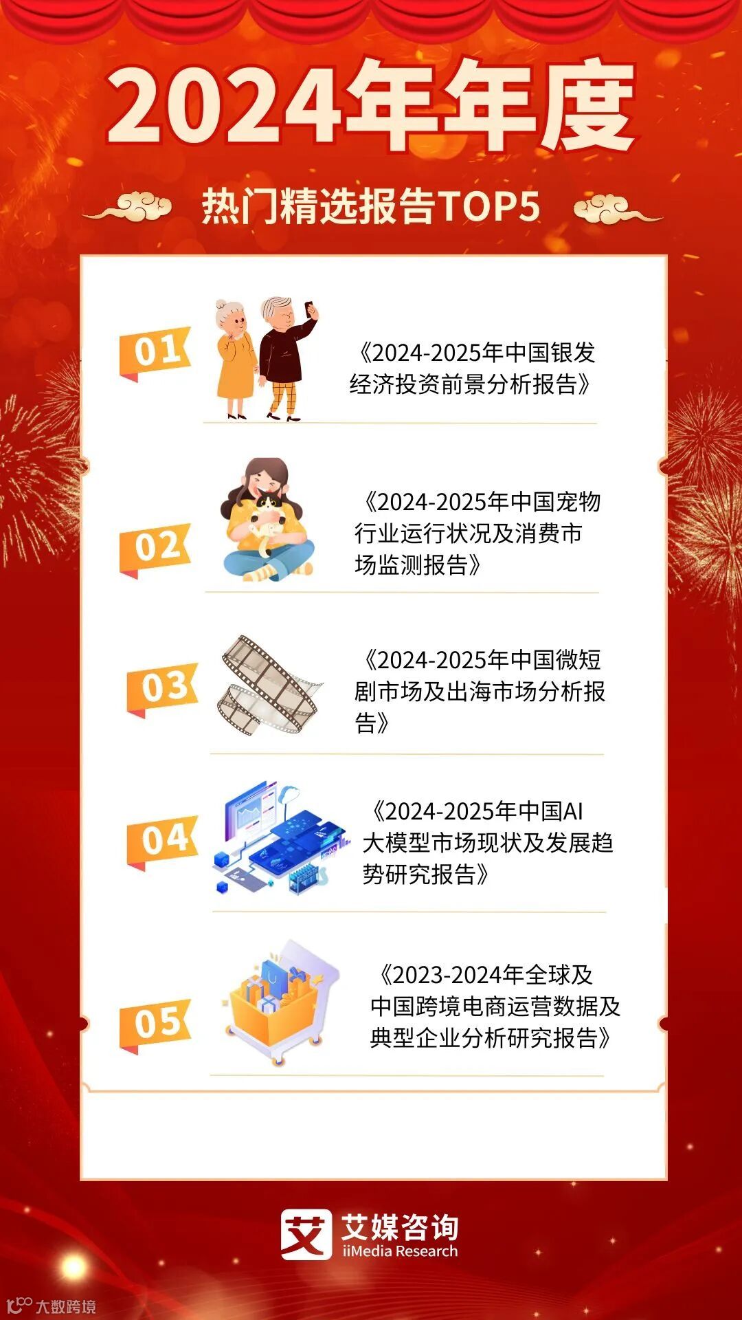 本文是一份关于2024年艾媒年度热门报告TOP20合集,我们以20份前沿报告为线索,勾勒了这一年度的行业风貌。2024年,银发经济、宠物、微短剧等行业持续升温,情趣用品、谷子经济、仓储会员制超市等行业亦保持高速发展趋势。与此同时,AI技术持续引领革新,AI大模型等前沿科技在市场中占据一席之地。这些新兴行业不仅为经济带来活力,更满足了消费者多元化的需求。