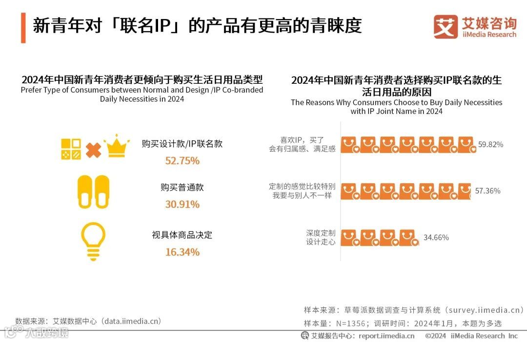 iiMedia Research(艾媒咨询)调研数据显示,消费者更倾向于购买设计款/IP联名款生活日用品。IP联名款产品独特的设计、好玩有趣的风格对新青年有更强的吸引力,艾媒咨询分析师认为,基于以热门动漫IP为基础的谷子商品,将对新青年群体产生更强的吸引力。