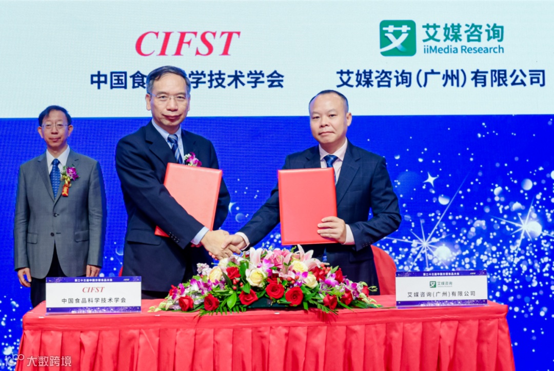 (左起中国食品科学技术学会副理事长,中国疾病预防控制中心营养与健康所所长丁钢强 艾媒咨询CEO兼首席分析师张毅)