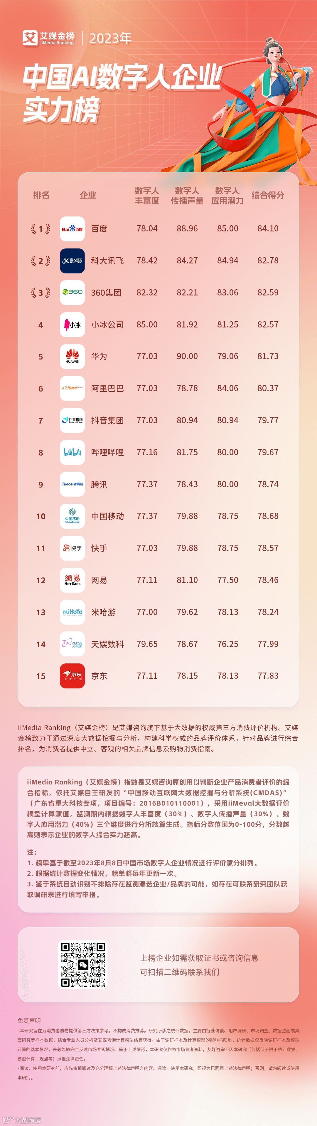 本期将对“2023年中国AI数字人企业实力榜”这一子榜单进行解读。