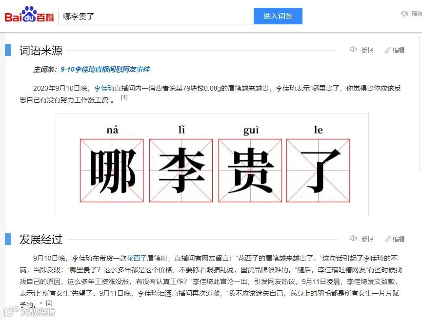 (图片来源于百度词条“哪李贵了”截图)