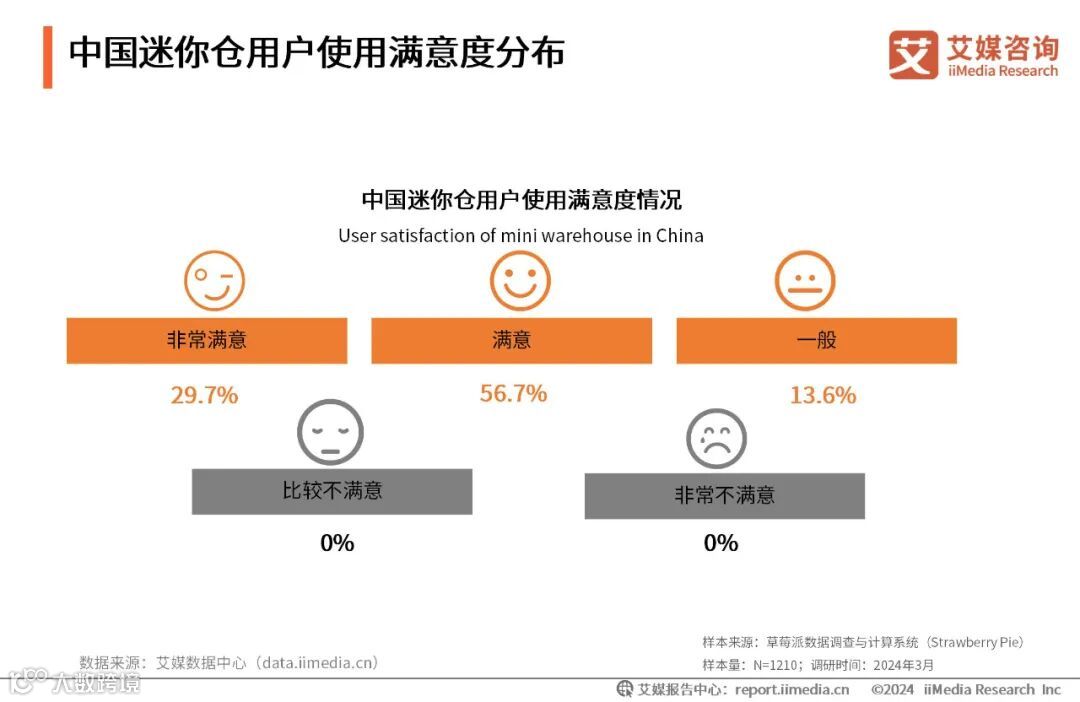 中国迷你仓用户使用满意度分布