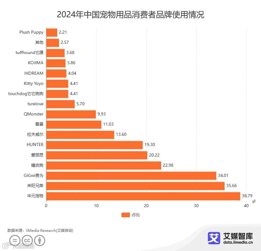 iiMedia Research(艾媒咨询)调研数据显示,超七成消费者会经常购买同一品牌,华元宠物(38.79%)、来旺兄弟(35.66%)、GiGwi贵为(34.01%)、嬉皮狗(22.98%)、爱丽思(20.22%)是消费者经常购买的前五品牌。