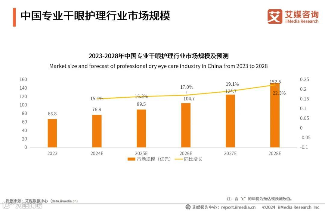 市场规模:2023年中国专业干眼护理市场规模为66.8亿元,预估2026年将突破百亿元