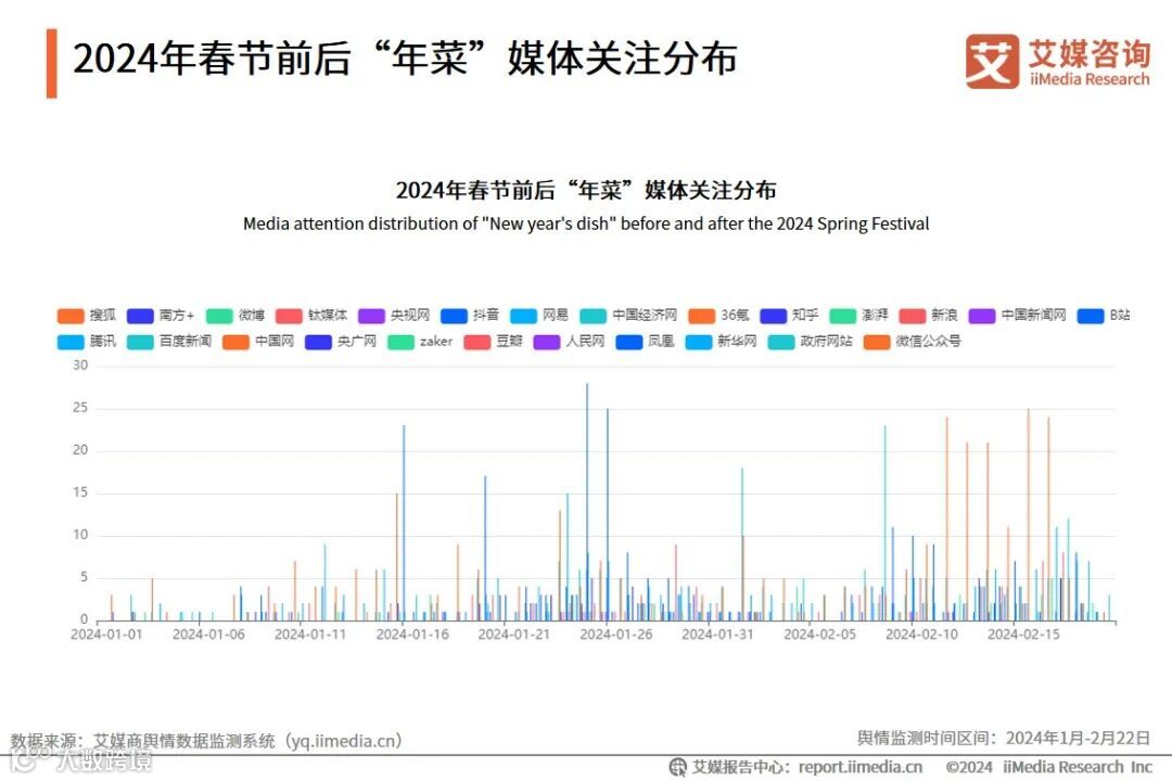 iiMedia Research(艾媒咨询)数据显示,“年菜”的媒体传播渠道以新闻网页为主,并与综合门户、自媒体等共同构成传播矩阵。凤凰网、搜狐网等媒体在传播中发挥重要作用。
