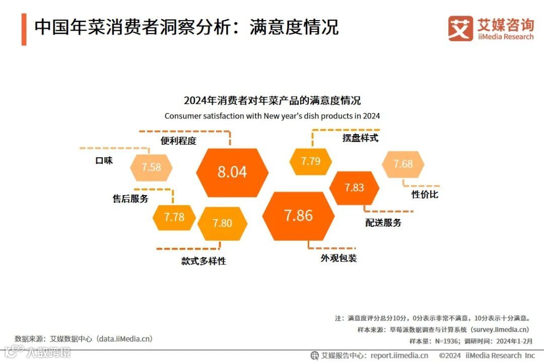 iiMedia Research(艾媒咨询)数据显示,消费者对年菜便利程度的满意度较高,其次是外观包装和配送服务;相比之下,消费者对年菜口味、性价比方面不够满意。艾媒咨询分析师认为,年菜得益于便利性和观赏性获得消费者的青睐,但要想走持续发展之路,仍需要相关企业提高对菜品质量的要求,在菜品口味上精益求精,为消费者提供物美价廉的食物。